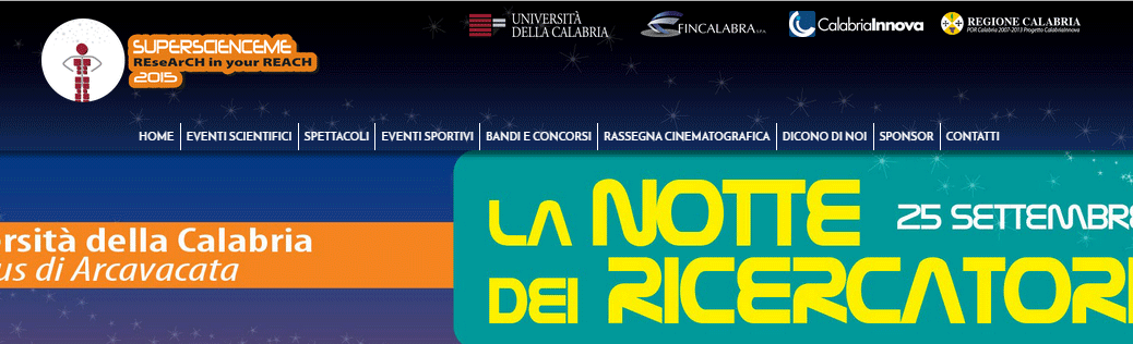 Durante tutta la giornata di Venerdì 25 Settembre si svolgerà all’Università della Calabria la Notte dei Ricercatori 2015. Dalle 9 di mattina sarà possibile effettuare visite guidate nelle strutture, dipartimenti, officine e laboratori dell’Unical, mentre dalle 16.30 e fino a notte inoltrata il ponte dell’Università si trasformerà in Ponte della Ricerca, con tanti stand attrezzati dove verranno esposti i risultati dell’attività di ricerca.